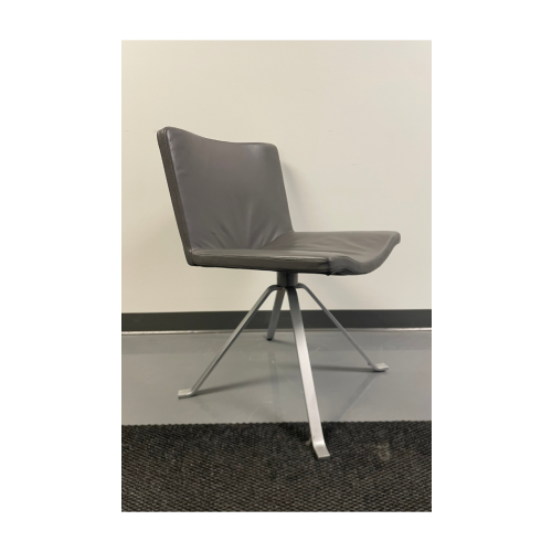 Mid-back leather lounge chair with no arms and a four-leg swivel base. Perfect for lounges, offices, and reception spaces.